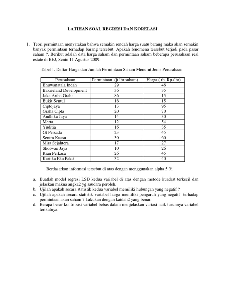 Contoh Soal Regresi Dan Korelasi