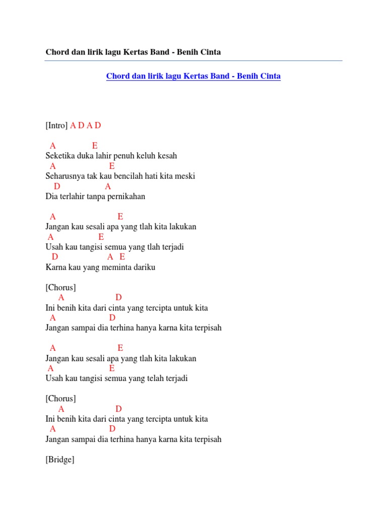 A E B E 2x B E Biar Sapa Lai A Seng sama ale Nona B Cinta yang se kasi A E Sio Beta jaga sampe mati E Cinta Semata Wayang A Beta terlanjur sayang B Badai cinta slalu datang E Tuhan tolong ee E A Biar hujan badai lai nona B E Ini Cinta Beta. Lirik Lagu Doddie - Cinta Semata Wayang Biar Sapa Lai Seng sama ale Nona. Wayang Cinta Sesaatmu Chord Intro D E A G D A Bm Em saat ini ku rasakan A hadirnya dirimu D F sejukkan hatiku Bm Em A hanya.