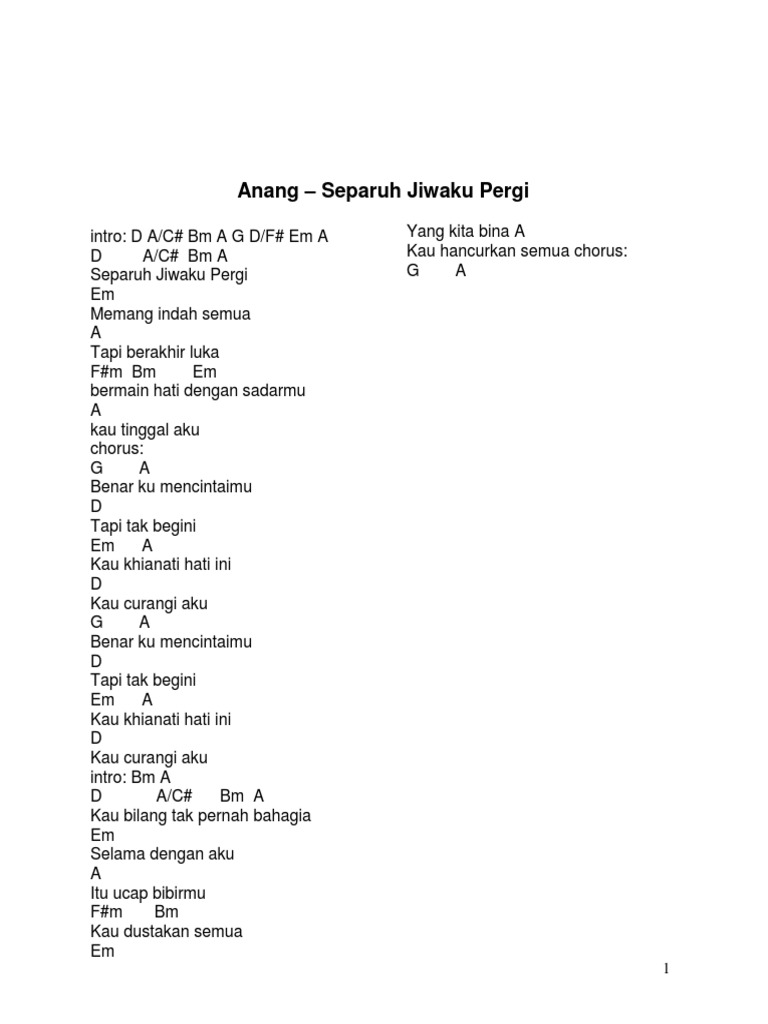 C Em Kau gadisku yang cantik Am C Coba lihat aku disini Dm G C Di sini ada aku yang cinta padamu. ST 12 Anugerah Ilahi. F Em Dm G.