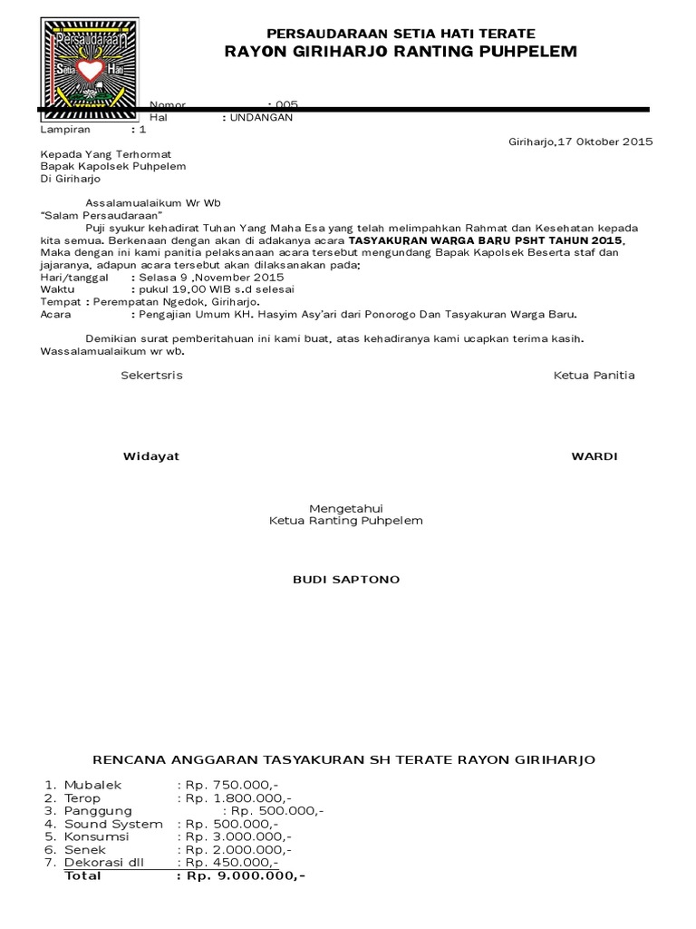 Pada kesempatan kali ini saya akan membagikan 43 Koleksi Contoh Undangan Syukuran Warga Baru Psht Gratis Terbaru pada anda yang tentunya saya bagikan secara gratis Contoh Undangan Syukuran Warga Baru Psht merupakan rangkuman dari. Download Now Contoh Surat Undangan Tahlil 40 100 1000 Hari Haul Doc. Undangan Sarasehan Suro Persaudaraan Setia Hati Terate Komisariat Kor.
