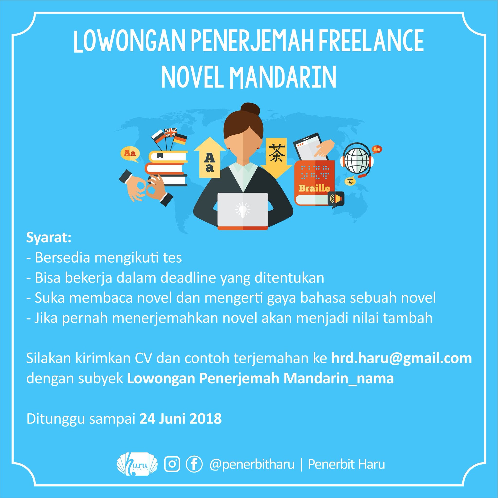 Penerbit Haru On Twitter Lowongan Penerjemah Freelance Novel Mandarin Terakhir Pendaftaran Hari Ini Silakan Bagi Teman2 Yg Berminat Merasa Memenuhi Kriteria Ditunggu Pendaftarannya Rt Post Ini Mention Teman2 Kamu Jg