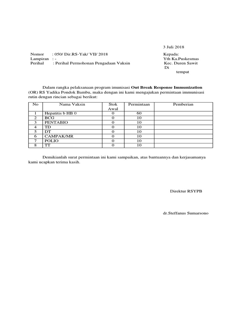 Surat Permintaan Oat Ke Kabid Pmk Februari. Total vaksin yang terdistribusi sebanyak 5037398 dosis dengan sisa stok vaksin sebanyak 1141456 dosis. Contoh Surat Permohonan Ke Puskesmas picture posted ang submitted by Admin that preserved in our collection.