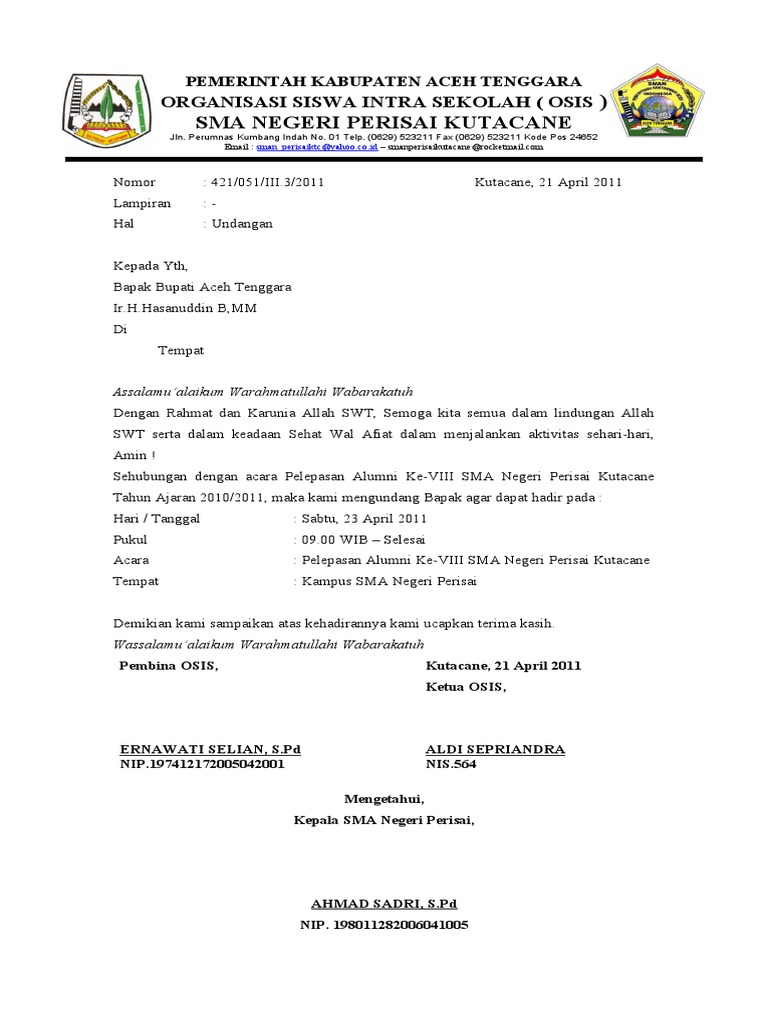 Contoh Surat Resmi Undangan Perpisahan Sekolah