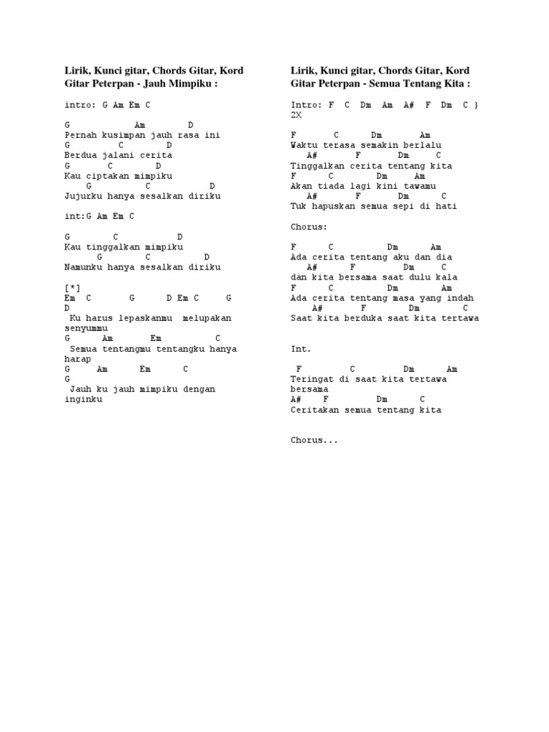 Peterpan merilis lagu Yang Terdalam pada tahun 2003 di bawah naungan Musica Studios. Kulepas semua yang ku inginkan. Situs yang berisi tentang kumpulan chord mudah kunci gitar dasar dan lirik lagu indonesia maupun mancanegara lengkap.